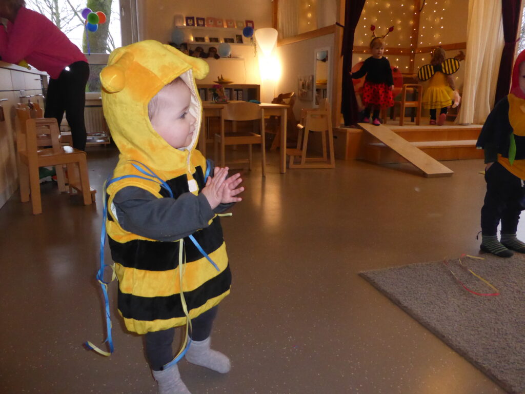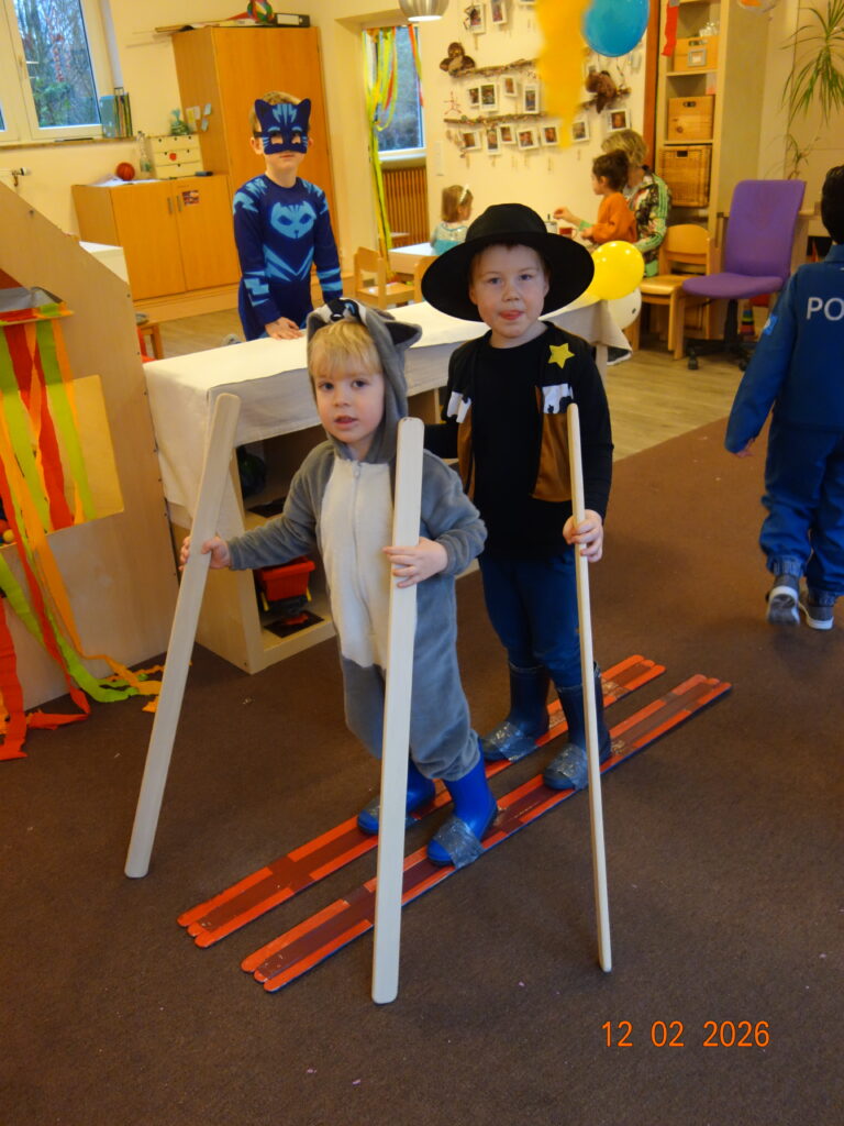 Wie in jedem Jahr, haben wir die bunte Jahreszeit mit den Kindern sehr genossen und gut miteinander gefeiert. Im Vorfeld haben sich die Strolche und Maxis überlegt, unter welchem Motto unsere diesjährige Karnevalsfeier stehen sollte – demokratisch wurde sich für das Thema „Sportfest“ entschieden. So konnten die Kinder im Anschluss planen, welche besonderen Aktionen oder Dekorationen es geben sollte. Und schon ging es ran an Pinsel, Kleber und Stoffe: es wurden Gewichtsstangen und Medaillen gebastelt, die Turnhalle wurde mit goldenen Stoffen abgehangen und im Blumenzimmer gab es eine Winterwunderlandschaft in der die Kinder mit selbstgebastelten Skiern Skifahren konnten. Im Café gab es Sportler*innenmüsli und natürlich wurde zum Sportinator getanzt. Es war wieder ein rundum gelungenes, lustiges Fest!