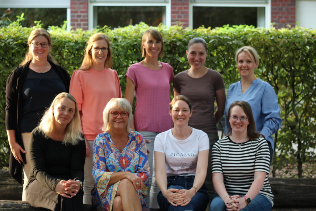 von hinten links: Svenja Scheele (Vorsitzende), Katja Pauly (stellv. Vorsitzende), Annika Wienhölter (Schriftführerin), Paulina Pogoda (Kassenführerin), Helena Lomakin-Nagerski (erste Beisitzerin), Anne Krüger (zweite Beisitzerin), Britta Elbers (stellvertretende Kassenführerin), Amelie Schulze Spüntrup (Kassenprüferin), Alexandra Jansen (dritte Beisitzerin)